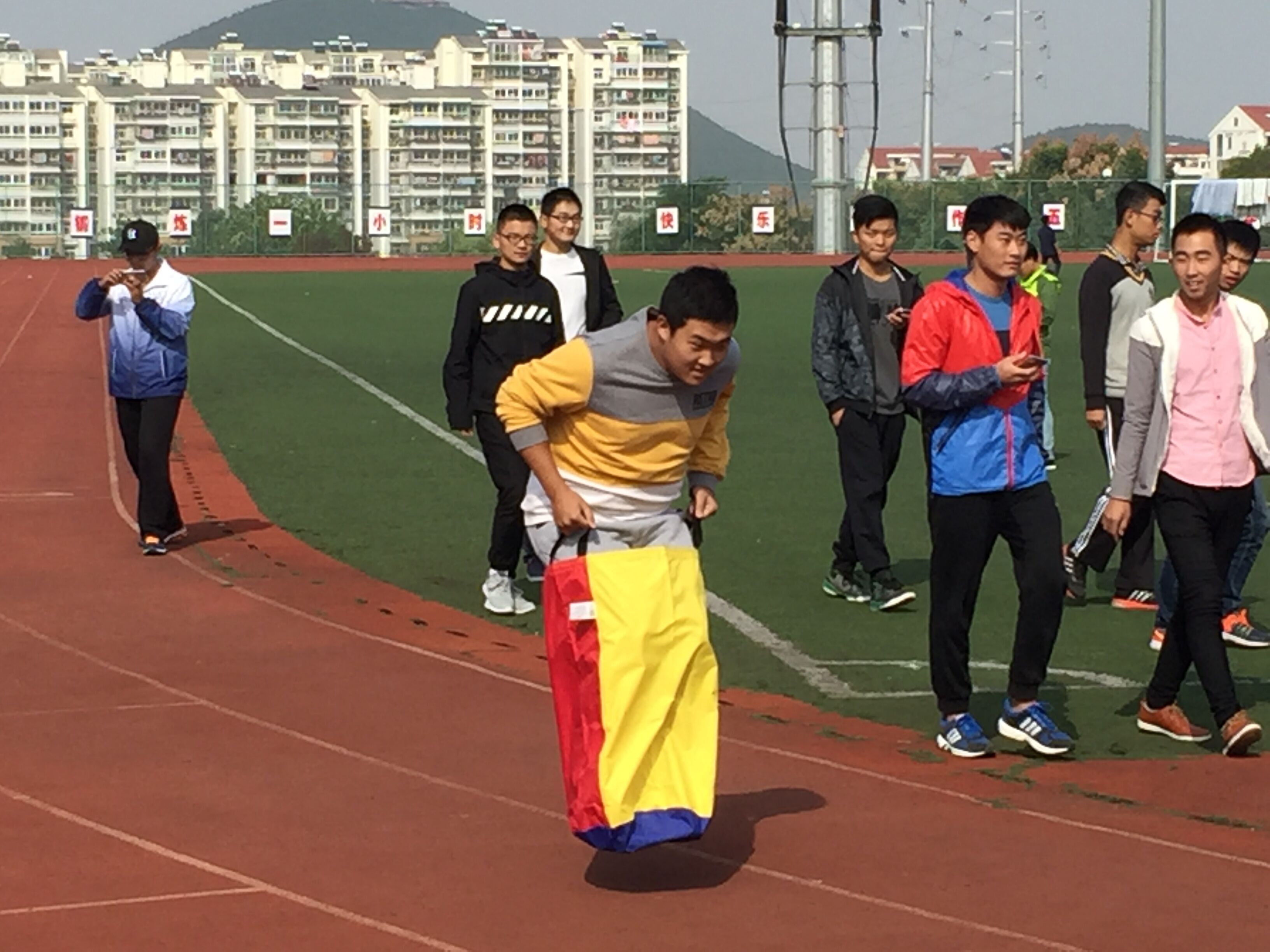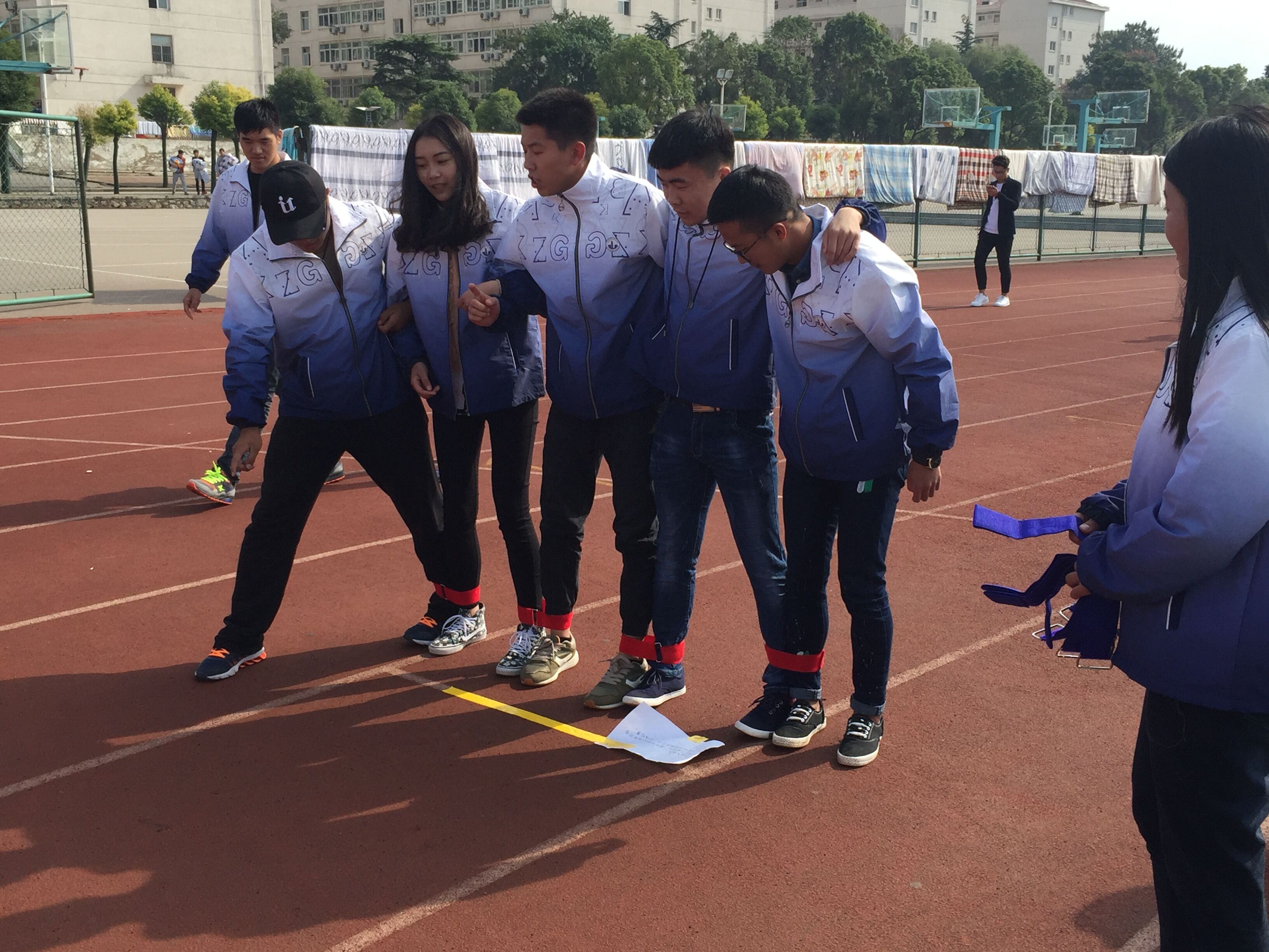 本次活动共分为布置场地、活动讲解、闯关比赛等三个流程。其中闯关比赛有袋鼠跳、趾压板取球、乒乓球传输、问答、杆夹篮球、四人夹球、球场投篮、你猜我划、五人六足等9个游戏。