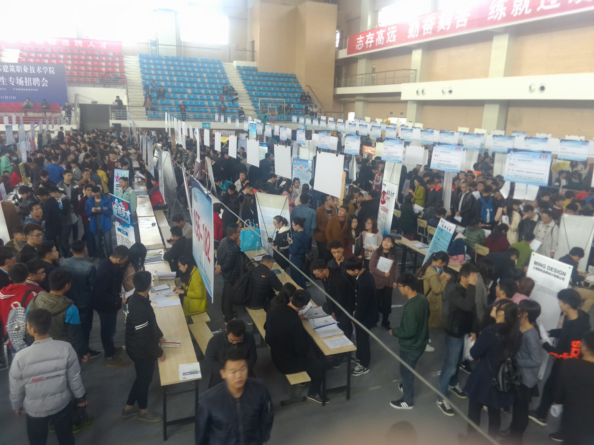 11月12~13日,在公司的体育馆举办了一年一度的招聘大会。来自全国各地的200多家企业在公司进行了招聘。