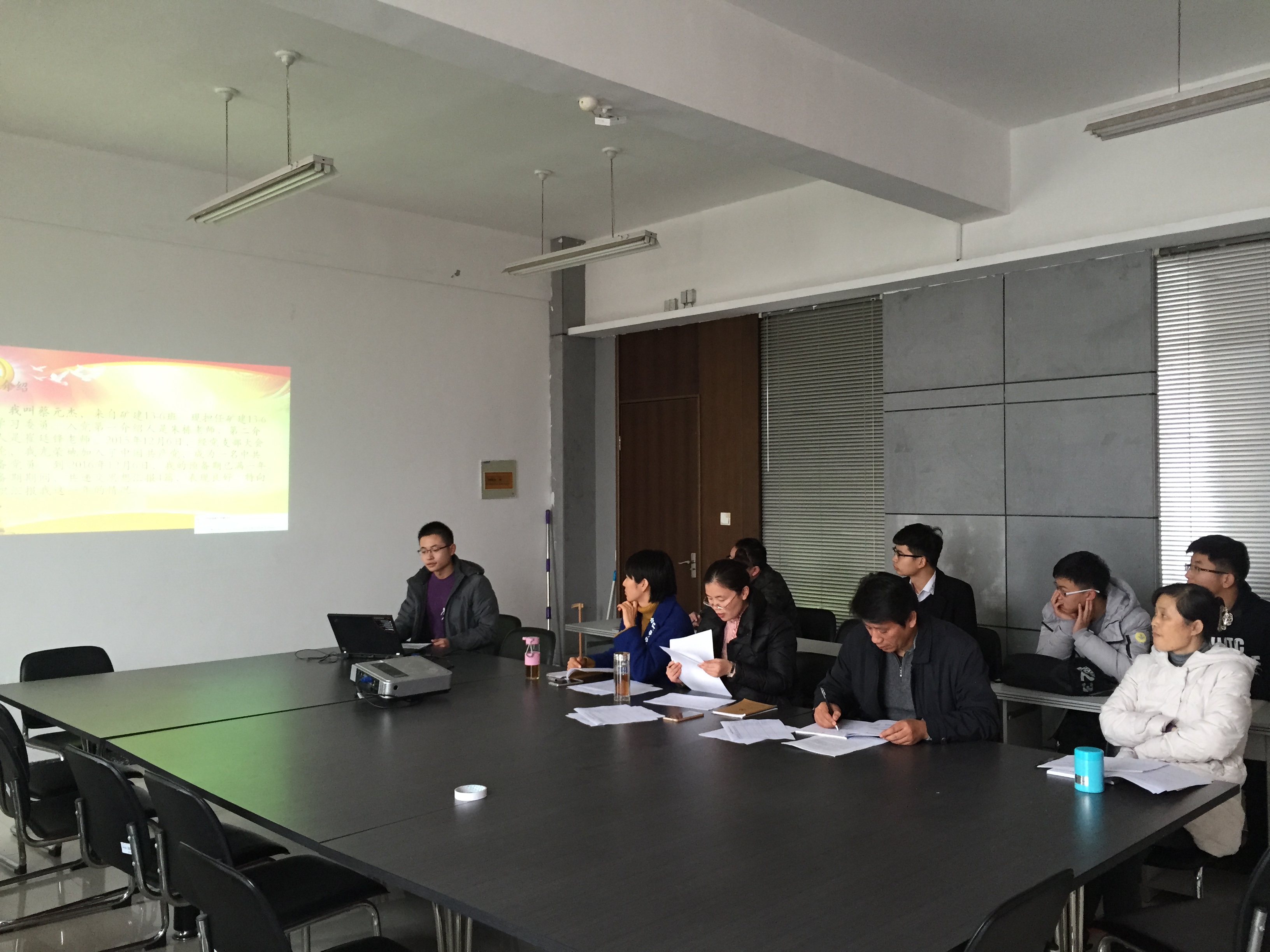 2016年12月12日下午2:30,公司召开员工党支部党员大会,主要议程是讨论蔡元杰、刘金锁2名预备党员转正事宜,本支部共有党员18人,其中正式党员9人,预备党员9人;因事请假党员2人,实到党员16人,其中正式党员7人,预备党员9人,到会党员超过半数,符合党章规定人数。