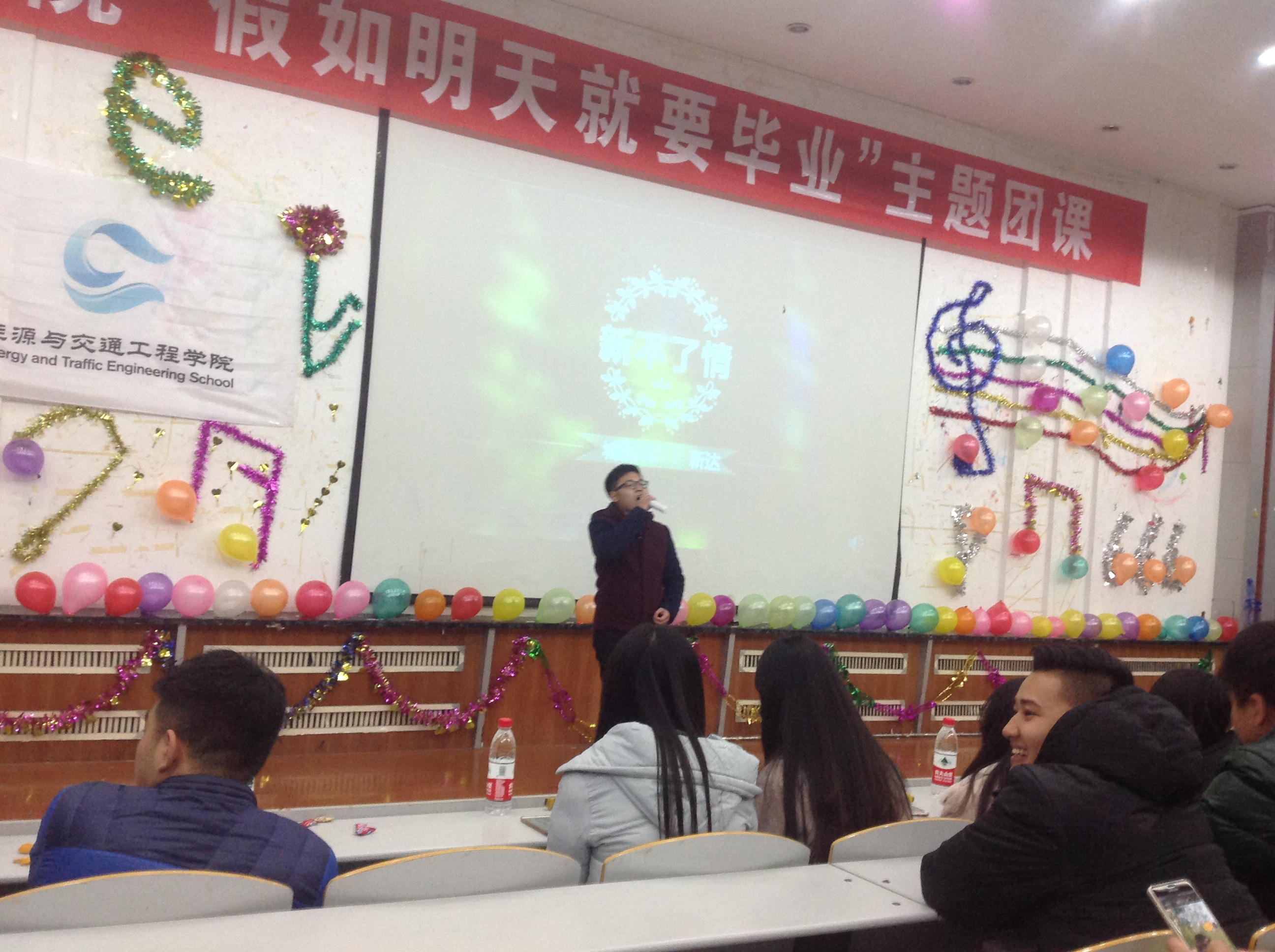 2016年12月15日下午7:00,公司于西阶梯举行“假如明天就要毕业”的主题团课。本次主题团课目的是让同学们了解到毕业是我们未来必定会面对的问题、毕业以后会遇到的各种问题以及如何充实无悔的度过老员工活。同时借此次团课拉近同学们的距离、增进同学们之间的情感、使同学们更加珍惜这个来之不易的同学之情和校园生活。