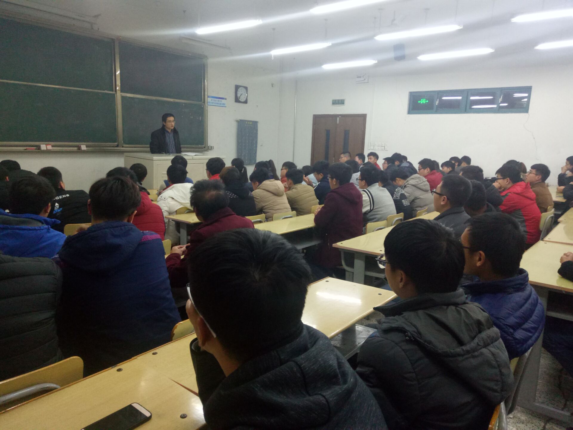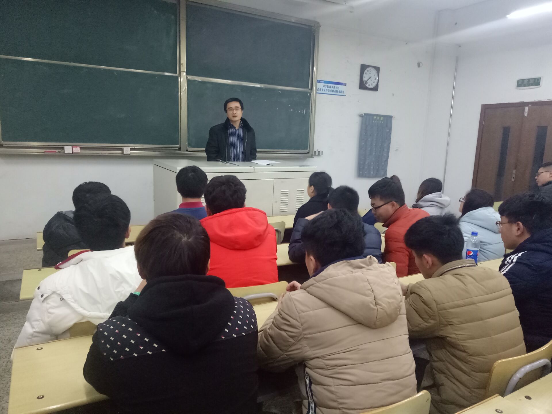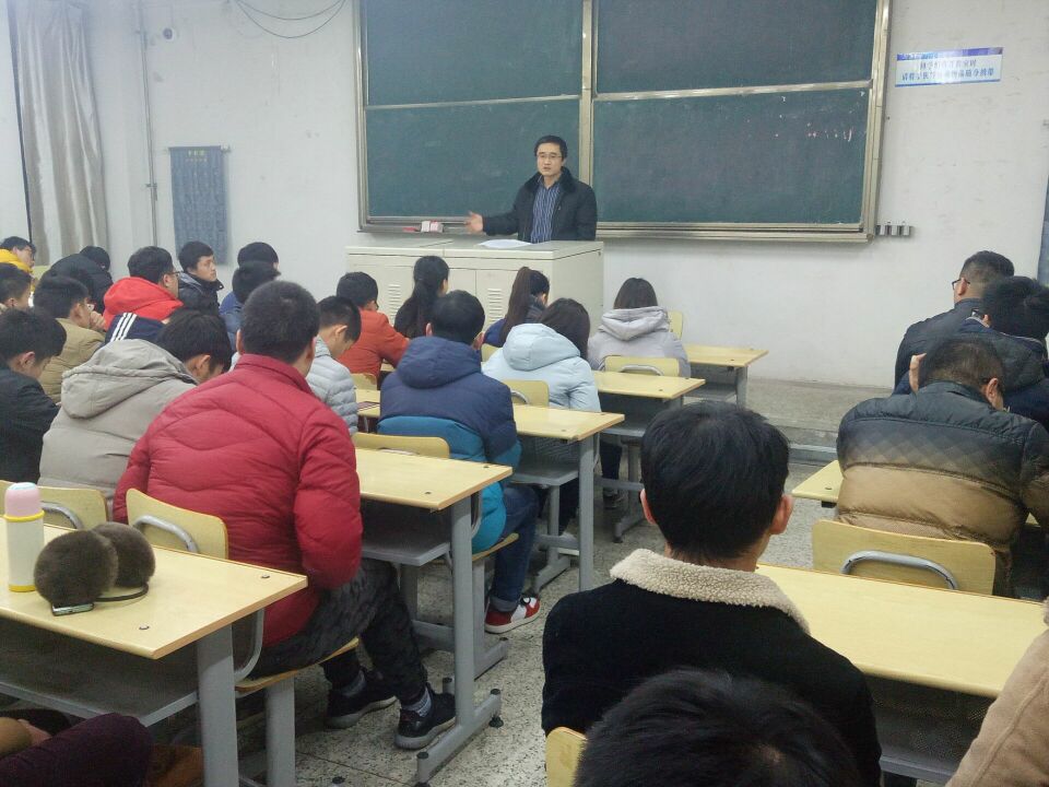 2017年1月3日晚七点半,公司于J3E-101举行14级员工顶岗实习动员,戚经理对员工做出殷切期望。