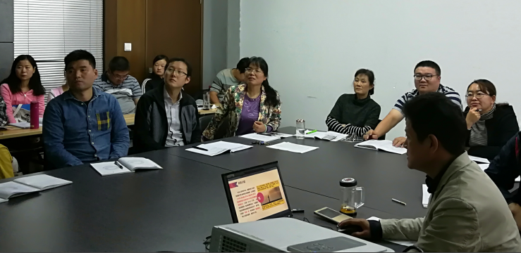 10月0日下午,在能源交通公司会议室靳会武经理为全体教师解读《江苏高等职业教育创新发展卓越计划》。