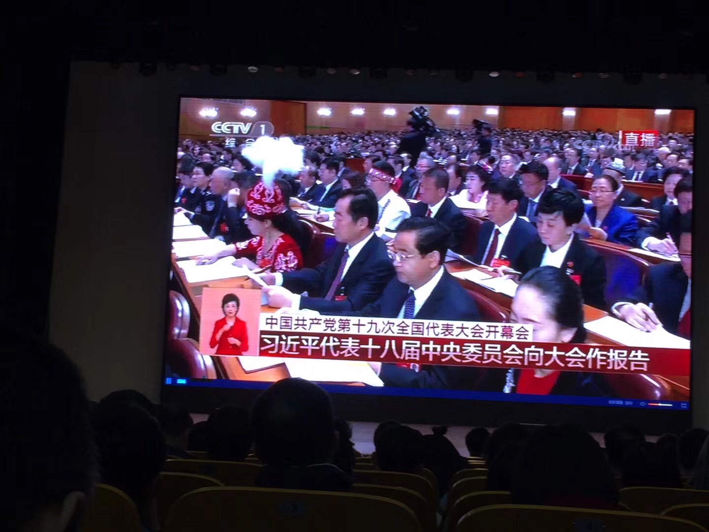 2017年10月18日,中国共产党第十九次全国代表大会在北京人民大会堂举行开幕式,能源公司组织全院教职工、预备党员、入党积极分子和团学联干部于公司会堂集中收看党的十九大直播。