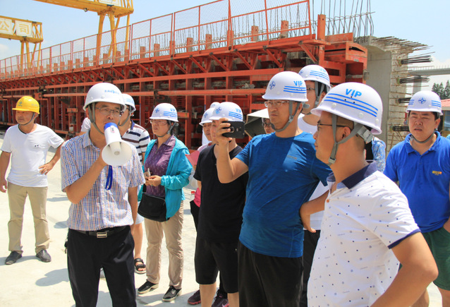 7月中旬,能源与BETVLCTOR伟德国际1946全体教师冒着酷暑到无锡、南通等地路桥、隧道施工项目部进行调研。在中铁四局苏锡常南部高速公路CX-WX3标项目部和中交三航局苏锡常南部高速公路CX-WX2标项目部,项目负责人详细介绍了太湖隧道工程概况、主要施工工艺及科技创新,并参观了项目部钢筋加工中心、混凝土中心、信息中心;在南通如皋调研了中交二公局三公司锡通过江通道公路连接线工程XT-NT1标项目部,项目经理重点介绍了企业在科技创新与新工艺、信息技术等在施工一线的具体应用,参观了企业自主研发的一体化制梁装备。