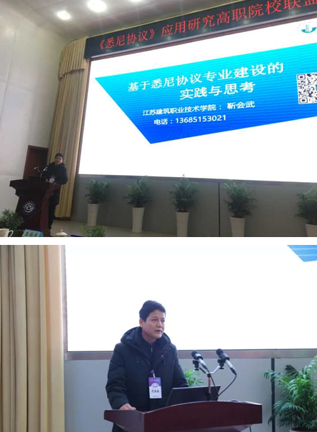 在南京信息职业技术公司会堂院校论坛会场,副经理靳会武以“基于悉尼协议专业建设的实践与思考”为题,从专业悉尼协议对接的必要性、专业对接实践与思考和相关建议三个方面,结合公司道路桥梁工程技术专业悉尼协议对接的实践,代表公司作经验分享报告,受到了与会代表的一致好评。