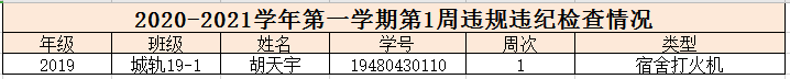 现将公司2020-2021学年第一学期第1周的文明修身检查结果进行通报,希望广大同学引以为戒。