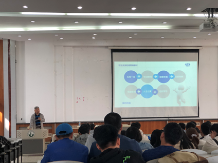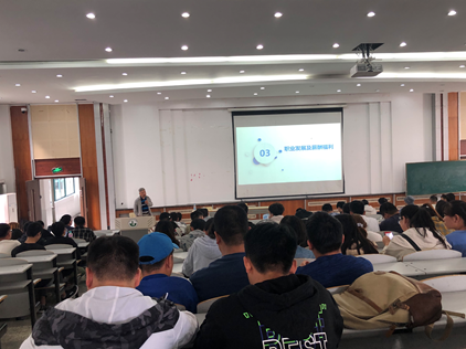 上午9点,招聘会正式开始,宣讲人通过视频宣传片向同学们介绍关于我们,接着为同学们详细介绍公司的发展方向、福利待遇等方面的问题,整个招聘会秩序井然。