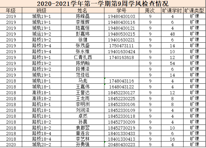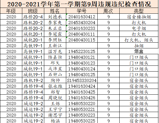 现将公司2020-2021学年第一学期第9周的文明修身检查结果进行通报,希望广大同学引以为戒。