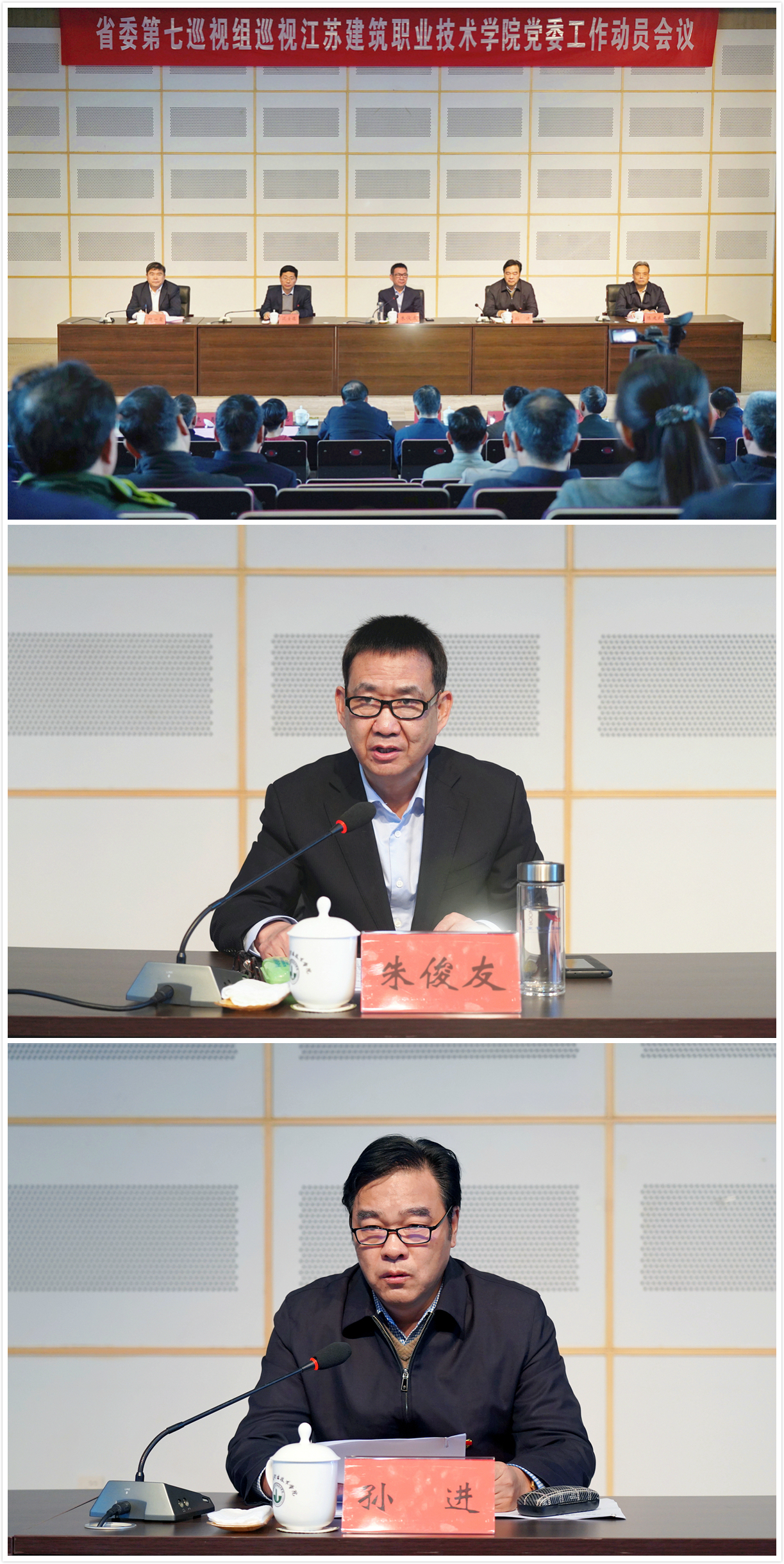 根据省委关于巡视工作的统一部署,2020年11月20日,省委第七巡视组巡视江苏建筑职业技术公司党委工作动员会召开。会前,省委第七巡视组组长朱俊友主持召开与江苏建筑职业技术公司党委书记孙进的见面沟通会,传达学习了省委书记娄勤俭同志近期关于巡视工作讲话精神,通报了有关工作安排。会上,朱俊友作了动员讲话,对做好巡视工作提出要求。孙进主持会议并作表态发言。