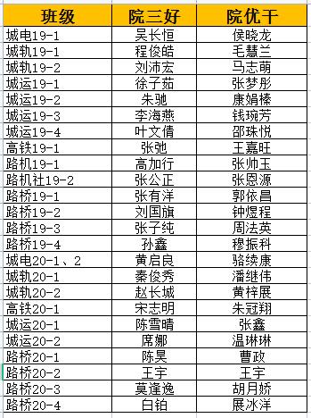 根据苏建院学〔2018〕60号文件要求,经各班级评审、推荐,公司审核,2020-2021学年第二学期共评选出院级三好员工23位、优秀员工干部23位,现将评审结果公示如下。