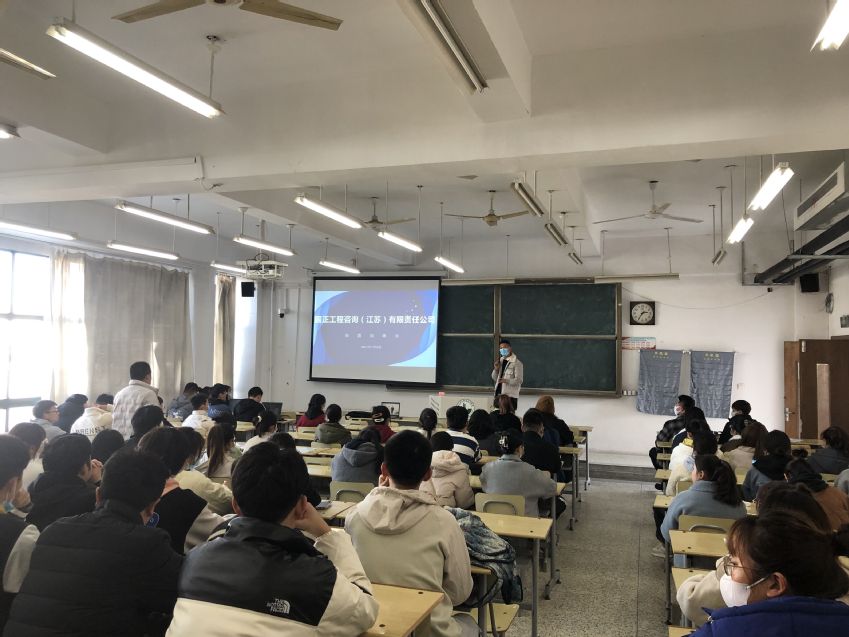 11月9日下午2点半,江苏东南工程咨询有限公司、国正工程咨询(江苏)有限责任公司同时在教3D-304教室进行了专场宣讲。