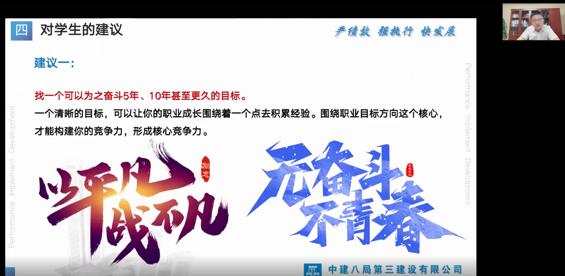 两位员工分别以“千帆竞发,奋楫者进”、“砥砺奋进,逐梦人生”为题,从个人发展、择业就业以及能力培养方面出发,分享工作中的心得体会。他们指出第一份工作对于整个职业生涯的重要性,诚恳建议同学不仅要脚踏实地地学习专业文化知识、提高技能水平,也应在日常学习、生活中全面发展,注重综合能力的培养。其次,找一个可以为之奋斗5年、10年甚至更久的目标,去构建自我的核心竞争力。与此同时,坚持不懈、不断积累,力争成为某个领域的专家,以适应社会激烈的就业竞争。