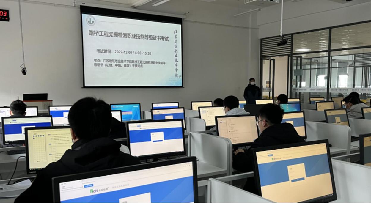 2022年1267日,BETVLCTOR伟德国际1946道路桥梁工程专业2020级的55名员工按期参加了路桥工程无损检测1+X职业技能等级证书在线理论考试和现场实操考核。