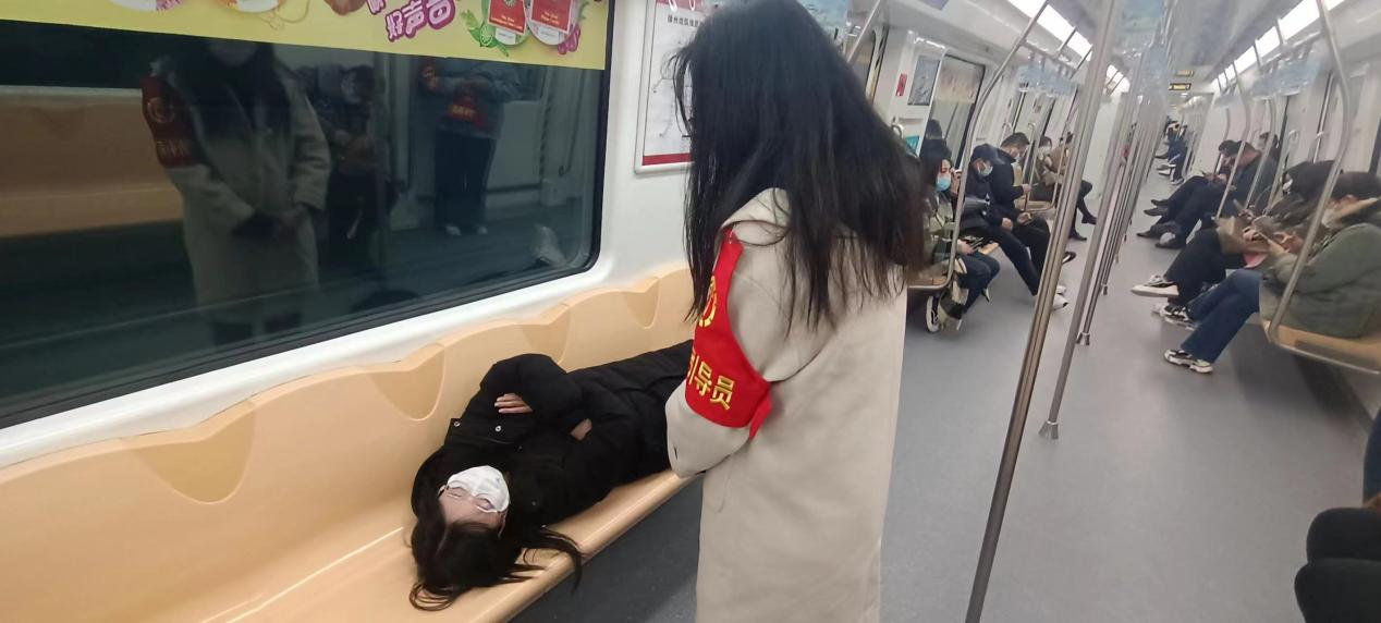 同学们在地铁工作人员的引导下,积极承担起“文明督导员”的角色,引导乘客文明礼让,安全乘车,劝阻地铁车站及列车车厢内不文明行为,包括争吵谩骂、随地吐痰、躺卧公共座椅、大声喧哗、争抢座位等等。