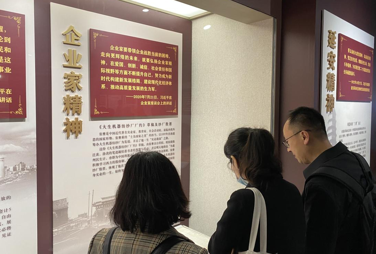 在中共一大会址中,党员教师们参观了“精神之路——中国共产党人伟大精神文物史料专题展”。展览共分为两个部分,第一部分运用沉浸式光影技术,生动呈现以伟大建党精神为源头的中国共产党人精神谱系。