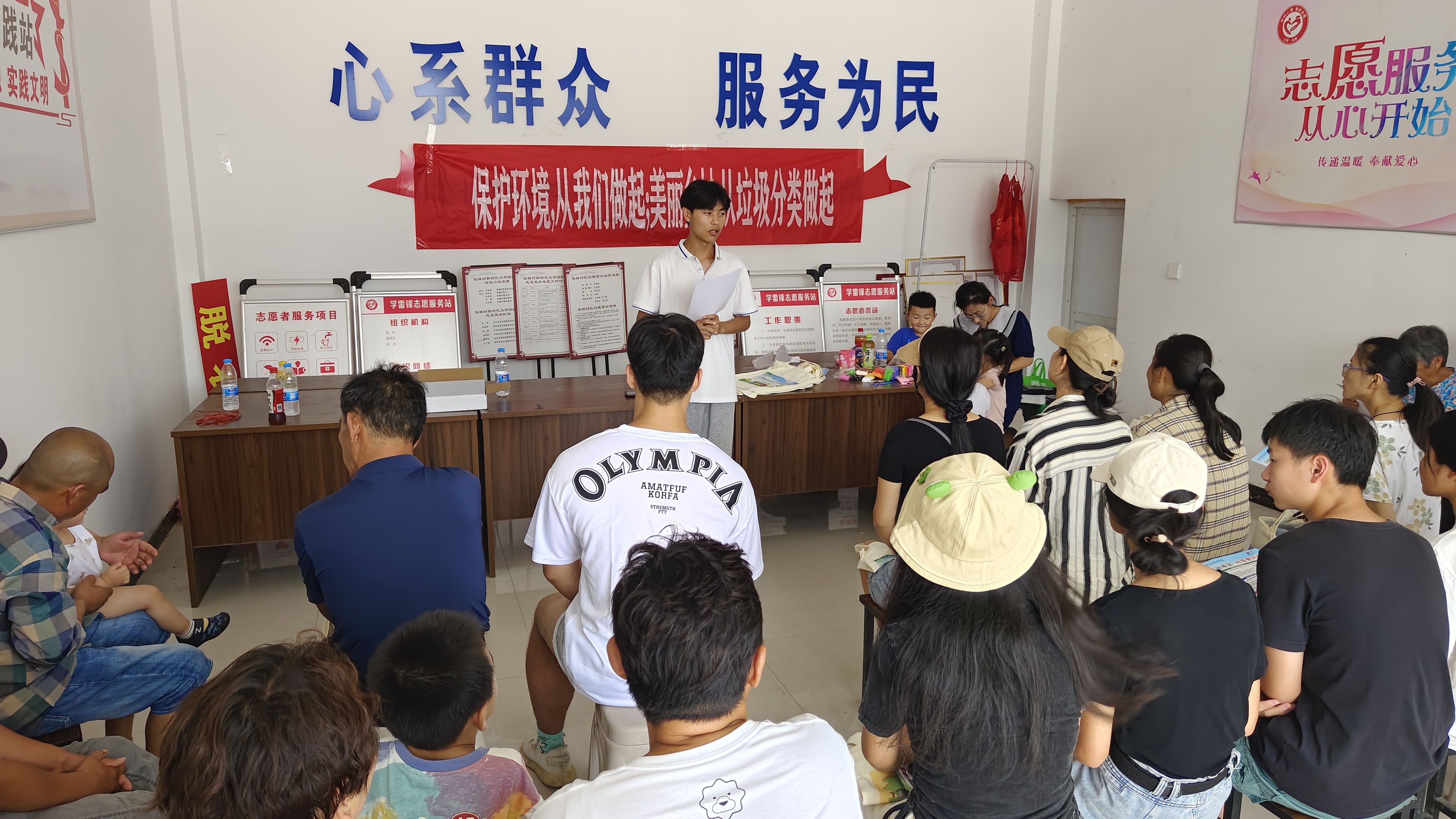 7月15日上午,实践团在张楼村党群服务中心举行垃圾分类宣讲活动。首先,实践团给参加活动的村民发放以“垃圾可成宝,分类更环保”为主题的布制手提袋,旨在提倡减少使用一次性塑料袋,降低垃圾产生量。然后,实践团通过宣传单、宣讲、PPT讲解、视频等方式讲解垃圾分类意义、具体分类知识,并就如何进行垃圾分类以及分类后如何处理等相关问题进行了解答,鼓励大家积极参与垃圾分类。最后,为提高宣传效果,实践团以知识竞赛的形式开展垃圾分类知识抢答,给答对的居民发放分类垃圾桶,村名踊跃回答,现场气氛热烈。