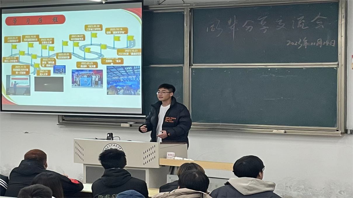 为帮助同学们在新的环境中更好地学习,激发同学们的学习热情,营造良好的学习氛围,公司于2023年11月14日在教三教学楼E201开展了这次“追逐梦想,不断进步”为主题的信仰公开课暨同辈分享交流会。本次学习成长交流会由李政言担任支持人,李孟豪、胡广振两位同学分别进行了分享,22级、23级共100余人参加了活动。