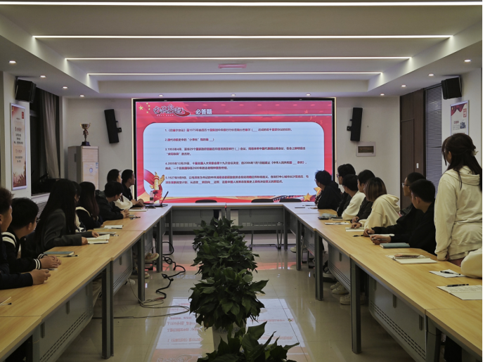 此次竞赛形式分为必答题、抢答题、风险题三部分,竞赛内容主要从“学习强国”中选取,内容涵盖党史党章党规。现场同学们拼脑力、比反应、斗心理,展现了奋发进取的精神风貌。