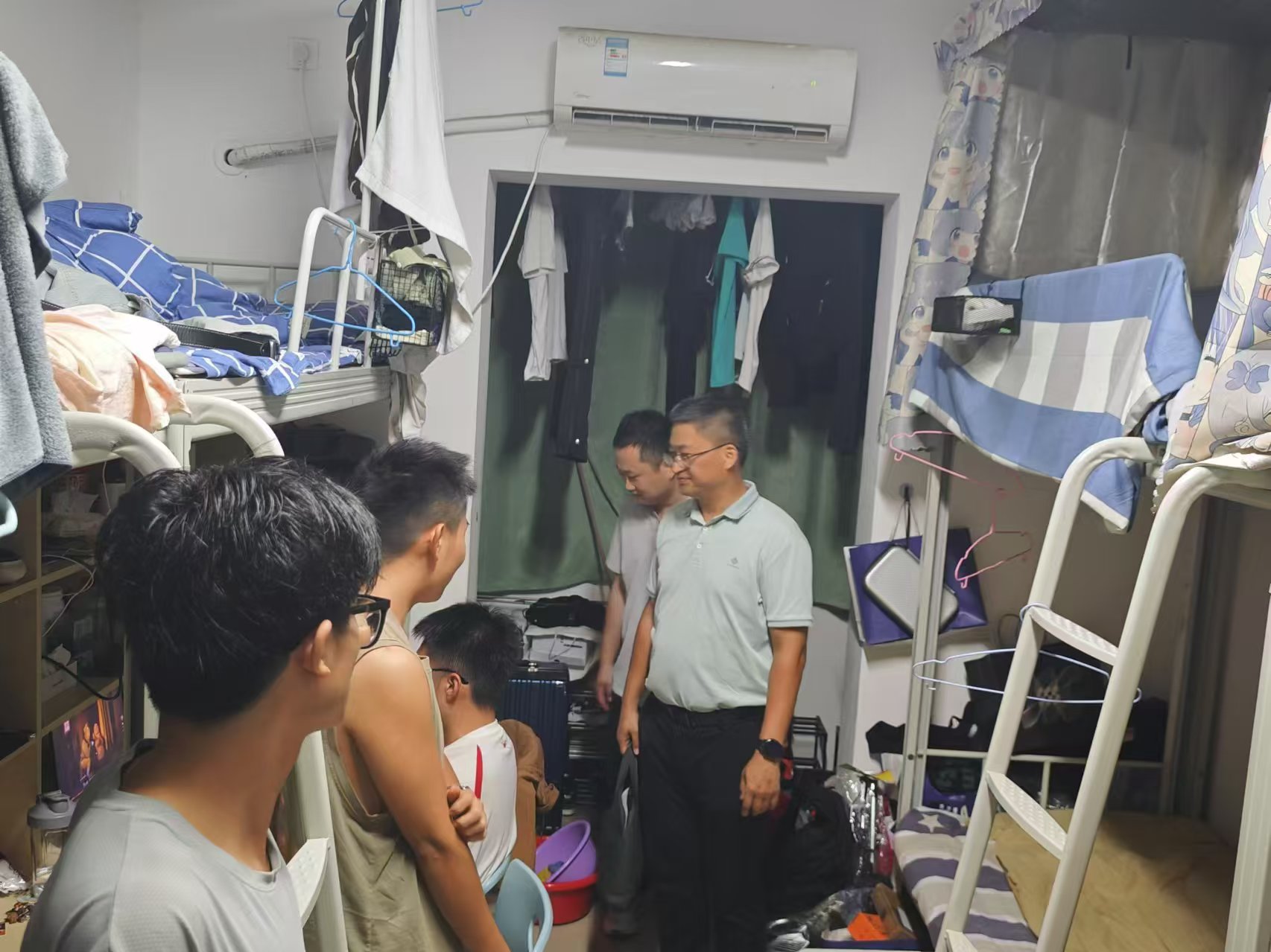 为进一步加强员工公寓的安全管理,营造平安、整洁、舒适、健康的居住环境,2024年9月8日晚,公司党总支副书记宗义江带领全体辅导员、班主任以及员工干部对全院员工公寓进行了一次全面深入的安全、卫生大检查。
