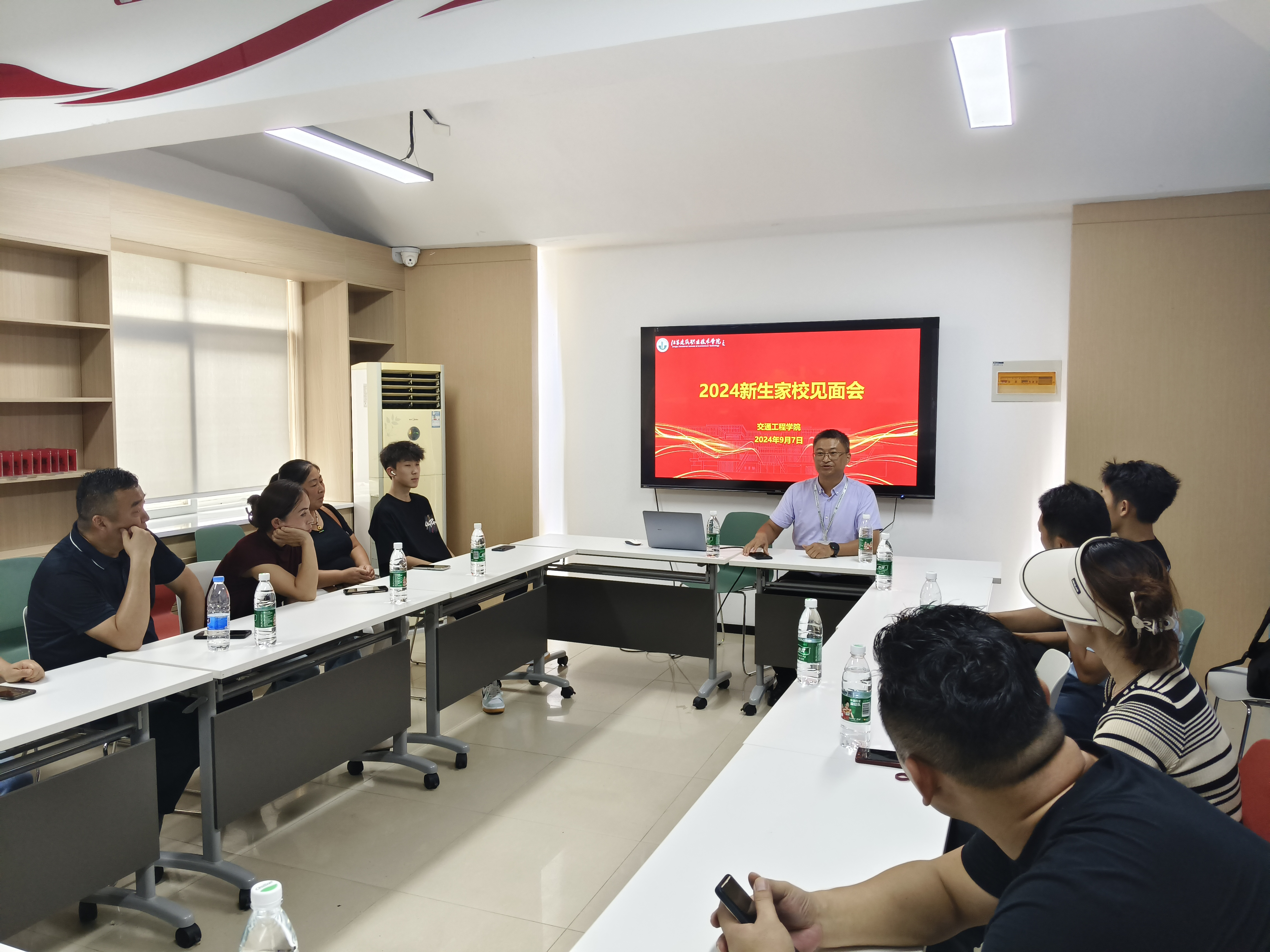 为搭建家校协同育人工作新平台,9月7日和8日上午,交通工程公司在一站式社区党团工作站召开了两场2024级新生家长见面会。公司党总支书记赵武、副书记宗义江、辅导员王震宇以及20余位家长代表和新生参加了会议。