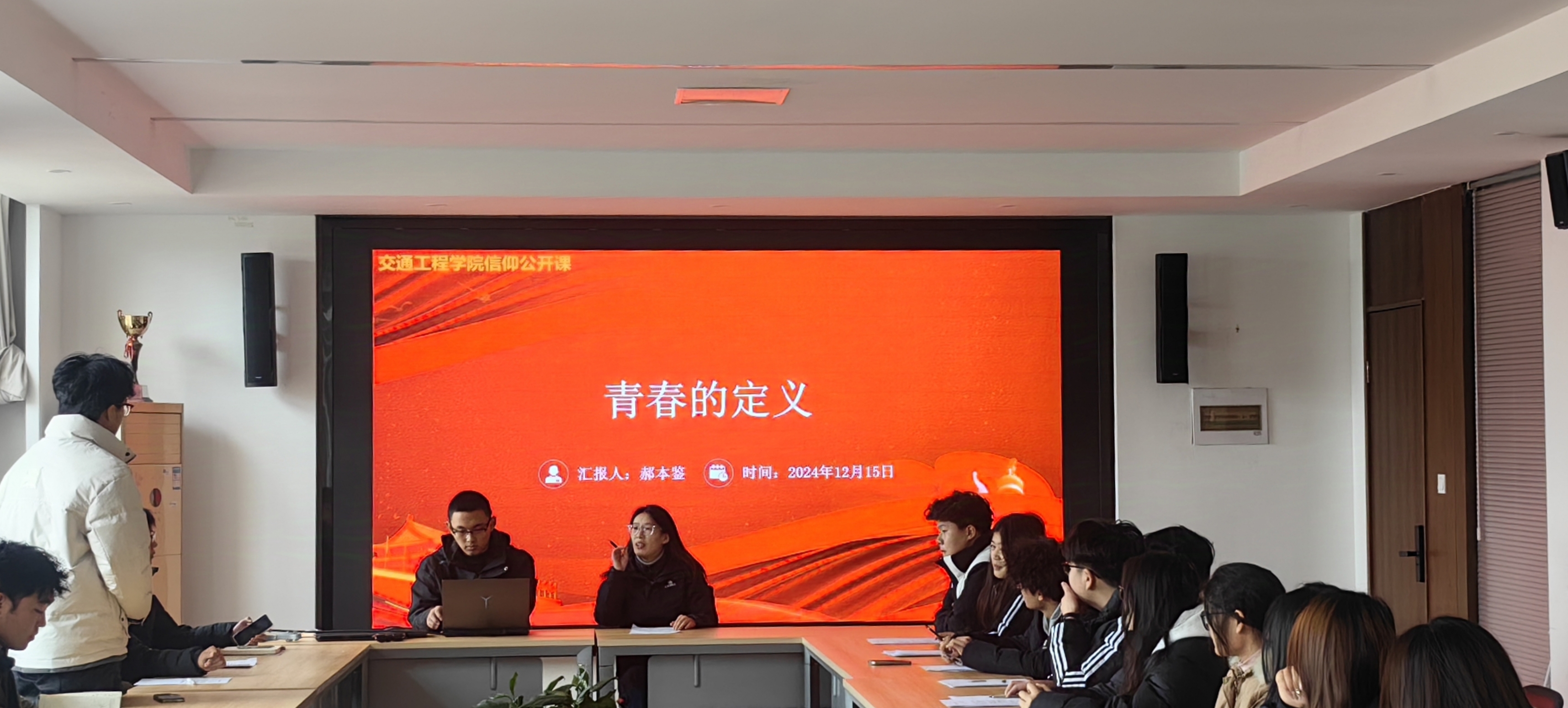 为进一步加强对团支书的思想政治引领,引导广大青年坚定理想信念,激发新时代青年的青春活力与责任担当,12月15日晚,公司在利亚楼B313举办“青春的定义”信仰公开课。本次信仰公开课由城轨22-2郝本鉴同学主讲,22、23、24级全体团支书参加。