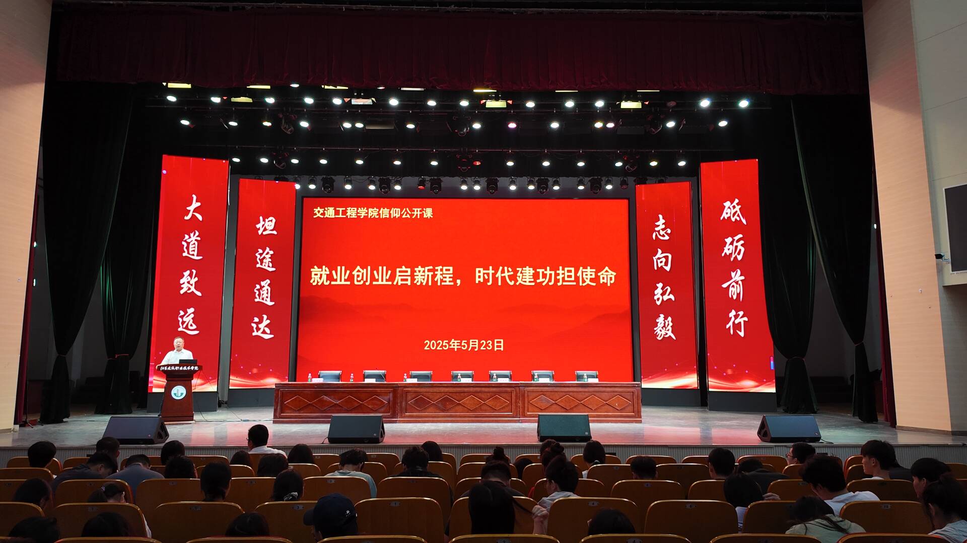 为引导毕业生在职业发展中厚植家国情怀、在时代征程中勇担交通使命,5月23日上午,BETVLCTOR伟德国际1946在会堂开展“就业创业启新程,时代建功担使命”信仰公开课。公司领导班子成员、全体毕业班班主任、辅导员及400余名毕业生齐聚一堂,公司党总支书记王国安主讲。