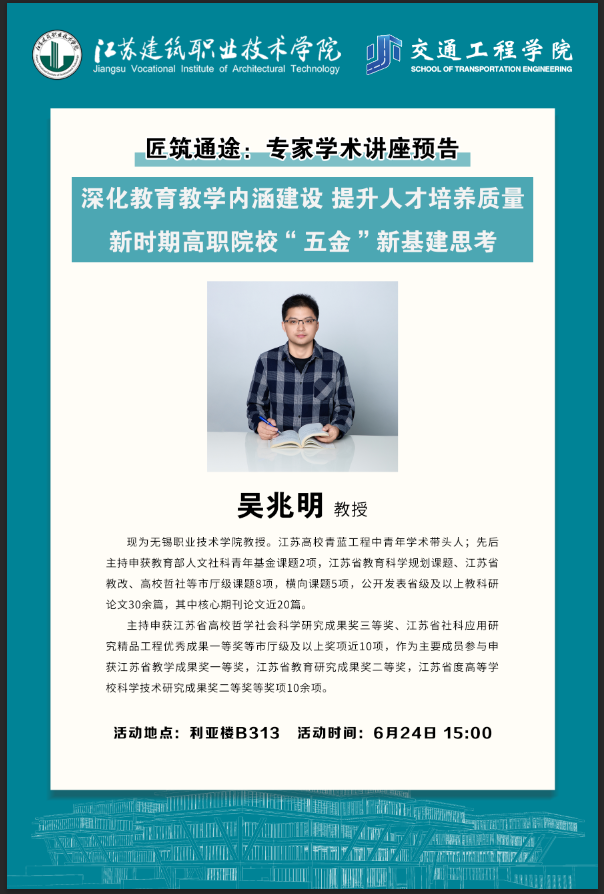 匠筑通途:专家学术讲座预告(深化公司产品内涵建设 提升人才培养质量——新时期高职院校“五金”新基建思考)