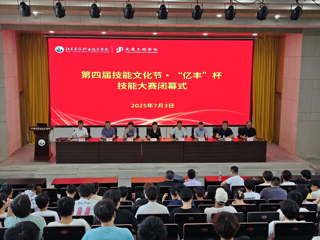 7 月 3 日下午,公司举行第四届技能文化节 “亿丰杯” 技能大赛闭幕式。公司党委副书记梁惠、徐州亿丰工程机械有限公司总经理高维岭、教务处处长袁涛、学工处处长周厚思、公司领导班子以及参加技能大赛的师生代表、获奖的员工代表参加了会议。