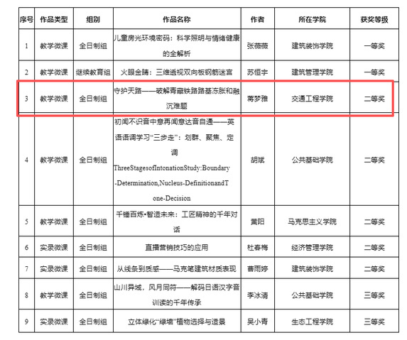 江苏省高等公司微课教学比赛由江苏省教育厅指导、江苏省高校微课教学比赛组委会主办,江苏省高等公司教育技术研究会承办。公司蒋梦雅老师作品(守护天路——破解青藏铁路路基冻胀和融沉难题)获二等奖。公司将继续紧密围绕立德树人根本任务,狠抓课堂教学质量,积极营造良好的教学研究和教学比赛氛围,不断优化提升技能人才培养质量和教师专业发展水平,为公司教学高质量发展提供坚实保障。
