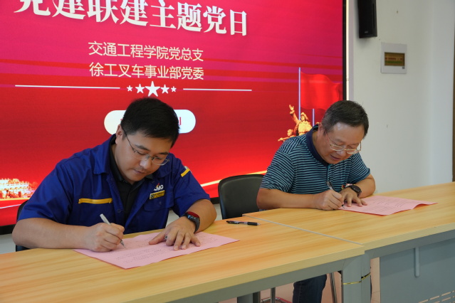 徐工特机、徐工港机总经理助理王杰分享了企业在党建引领下的发展历程、技术创新成果和对专业人才的需求标准。双方围绕党建与业务深度融合、人才培养方案优化、实训基地建设、科研项目合作等方面展开了深入探讨,并达成了广泛共识。座谈结束后,校企双方举行了党建共建协议签约仪式。