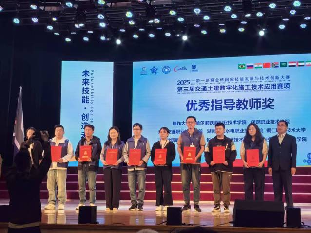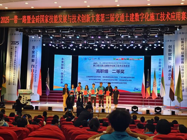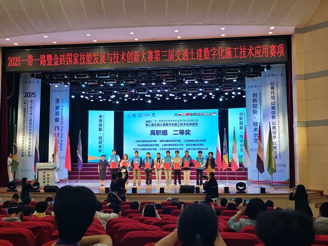 近日,公司在2025一带一路暨金砖国家技能发展与技术创新大赛的第三届交通土建数字化施工技术应用赛项(高职组)决赛中获得两项二等奖。(公路组指导教师:张伟、张丽娜老师;铁路组指导教师:高文艺、薛璐老师)。
